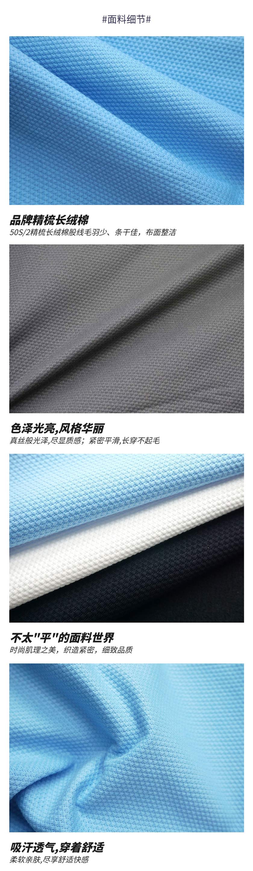 50S双股长绒棉氨纶弹力单面提花丝光棉面料挑选长绒棉股线为原料,小肌理质地,面料品质感强,不仅具有真丝一样的光泽,而且色泽鲜亮、不易掉色、面料尺寸比较稳定、垂悬感较好、面料挺括、抗皱性能好、不易起球起皱,主要用于高端T恤衫,Polo衫等。